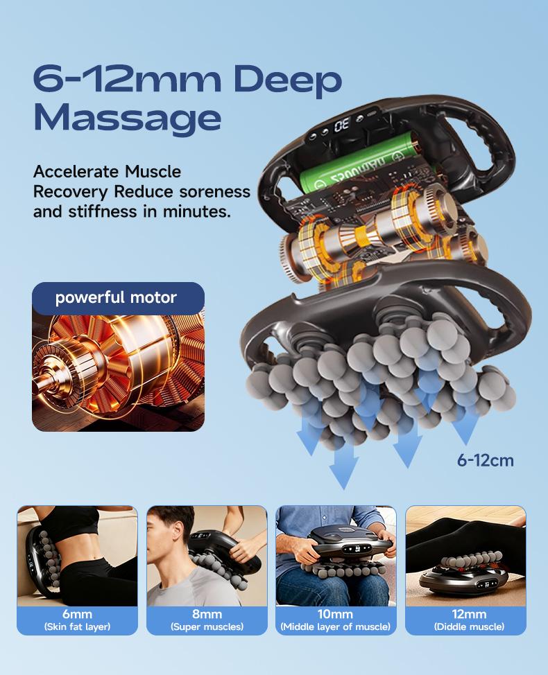 ✨ Powerful Performance & Precise Control ✨ The BENBO 42-Balls Massage Gun features a 16-speed transmission system for strong performance and precise control. Its four-link drive structure ensures stable power output under heavy load. Experience enhanced muscle relaxation and relief for the back, shoulders, legs, and feet. Ideal for daily use.