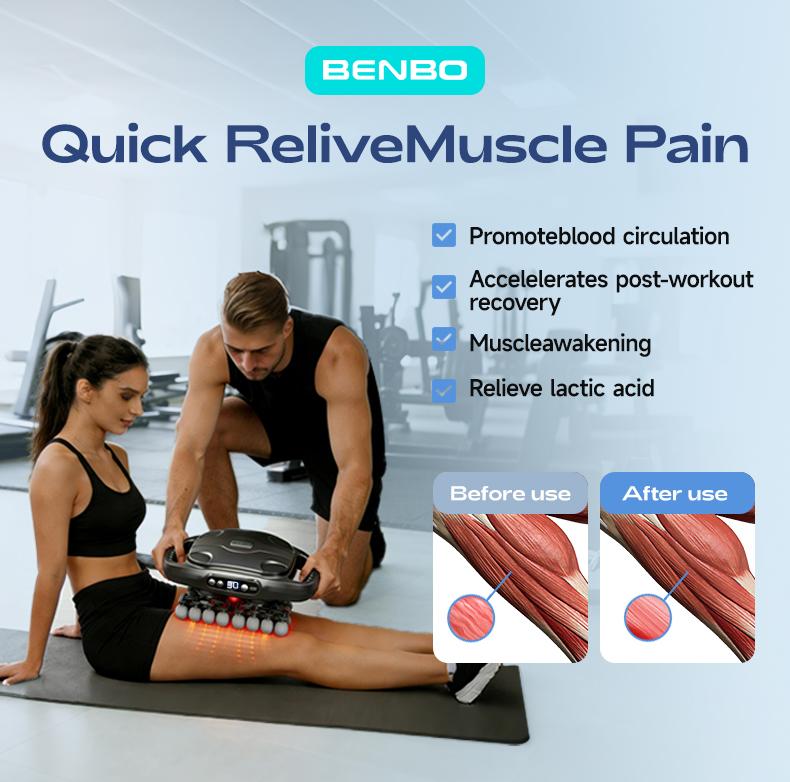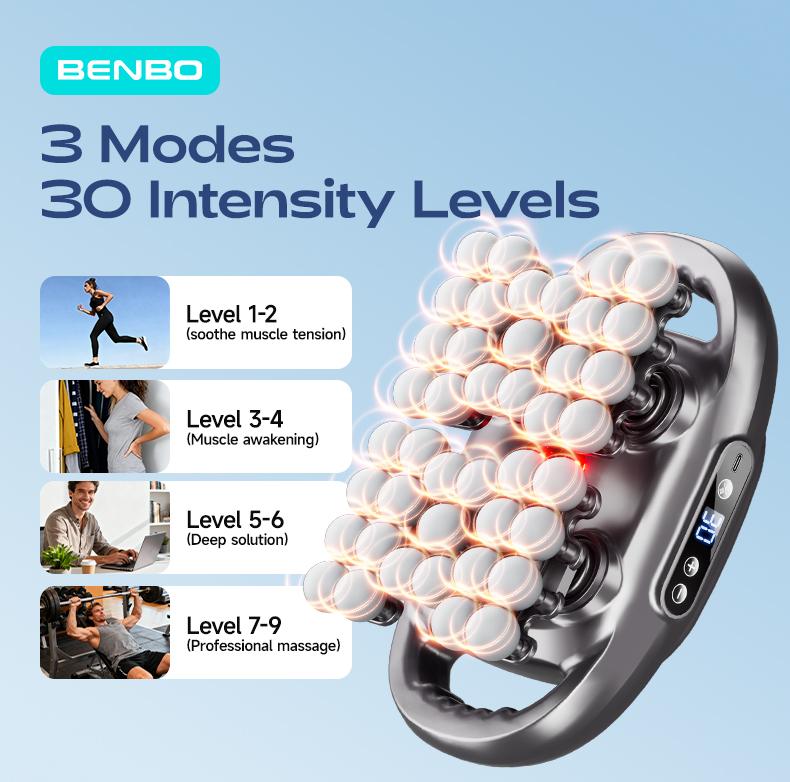 BENBO 42-Ball Massage Gun: 30 Intensities & 9 Modes with Red Light Therapy | Professional Muscle Relief for Back, Shoulders & Legs